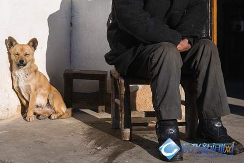 陆老平时没事的时候就这样在门口晒着太阳,唯有自家的小黄狗默默地陪着他。