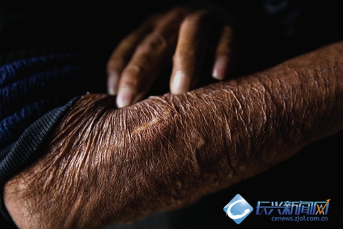 那是1943年,在吴兴县妙西乡楂树坞村,他所在部队曾经与伪军发生一次遭遇战,当时一颗子弹从他的手臂穿过,痕迹就此留下。