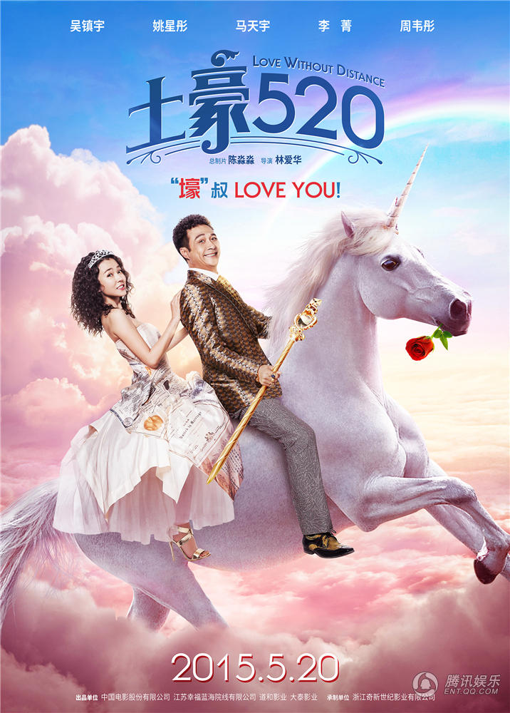 腾讯娱乐讯由香港著名导演陈可辛担任艺术顾问、香港情感派电影大师林爱华执导、资深制片人陈淼淼担任总制片、人气演员吴镇宇(微博)、姚星彤、马天宇、李菁(微博)、周韦彤领衔主演的爱情轻喜剧《土豪520》,将于5月20日上映。继早前发布了复古风先导海报后,片方再度曝光一组梦幻版海报。海报中,吴镇宇手持金杖与女神姚星彤,共骑一匹象高贵纯白的独角兽,前往爱情天国。另一张海报中,“壕叔”吴镇宇遭遇“冷面恶魔”马天宇的拦截。吴镇宇化身“爱神”丘比特,手持爱情金弓,守护心中真爱。这组海报也进一步透露了吴镇宇、姚星彤、马天宇在片中复杂的感情关系,导演林爱华表示:“土豪陈虽然富有,但是在爱情面前人皆平等,土豪的爱情也有泪有笑、充满荆棘的。“