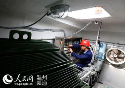 工作人员对南麂微网示范工程控制中心设备进行调试 陈小敏/摄