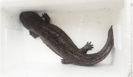 在现场,记者看到这条娃娃鱼约50厘米长,头部呈椭圆形,背部呈棕色,中间还夹杂着黑色花纹,两个前肢各长有四指,两个后肢各有五趾,重约1公斤。