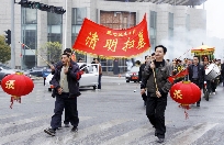 陈建土(塘川陈氏宗亲理事会副会长):是的,塘下人的宗族观念很强,每个宗族都会在清明节举办祭祖活动。这几年,随着市民经济条件的改善,每个宗族都想把祭祖活动搞得热闹一点,现在祭祖时彩旗、灯笼、乐队等必不可少。