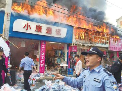 “当时有人注意到其中一家皮具店有火苗,随即报了警。”据现场商户刘女士介绍,起火时间约是下午3点半。起初,附近的商户和热心市民尝试过从市场内找来灭火器参与扑救,但收效甚微,火势很快便失去控制。“这里的商铺二楼都是木质结构,后期火势都是从上往下蔓延。”刘女士说,周边商铺多是服装店,堆放的货品一点就着,蔓延很快,“甚至有商户想冲进去抢些货物出来,结果刚进去就跑出来,一双手臂被烤得通红”。