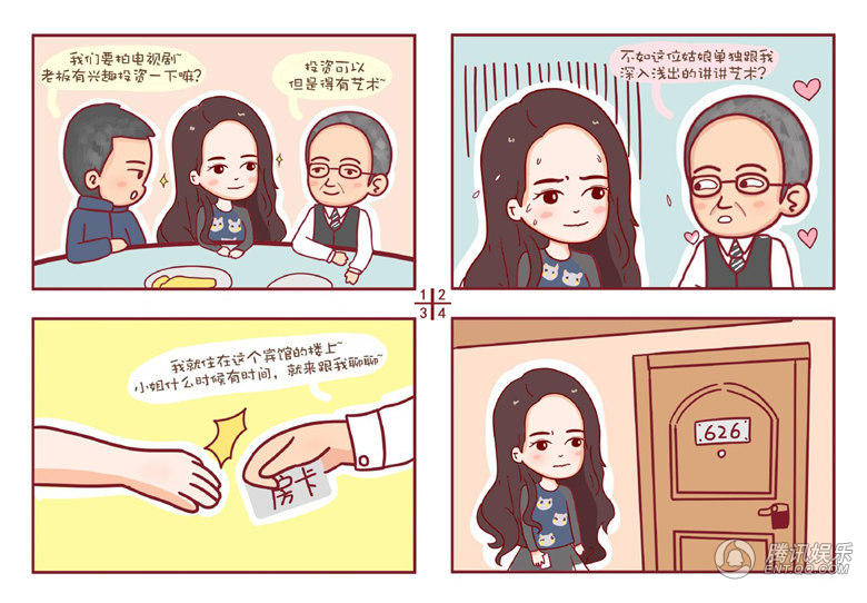 随着《天使的城》的播出,袁姗姗让观众看到了一个多面的她,资深影评人“铁任”更是发出了“别再忽视袁姗姗的演技”的呐喊,网友也纷纷在网上PO图示爱。近日,一张网友根据台湾八卦杂志《壹周刊》恶搞炮制“袁姗姗遭遇潜规则”的封面话题的图片,在网上流传,意图帮助袁姗姗“上头条”。还有网友则选择了“萌萌哒”的方式示爱袁姗姗:根据袁姗姗在“潜规则”桥段中的造型,精心画了一组可爱清新的漫画,完美地诠释了袁姗姗的呆萌。