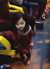 网曝小女孩光着脚手拿铁链乘公交 穿着破烂(图)