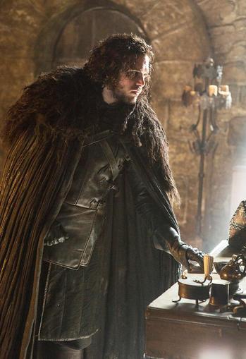 像《权力的游戏》的大部分角色一样,哈灵顿的乔·雪诺终日与死亡为伍,却奇迹般活到现在。作为史塔克的私生子,他在第一季就失去了父亲,异母兄弟罗伯和继母也在第三季被残忍杀害,两个姐妹和小弟弟杳无音讯,不知所踪。上一季中,他失去了初恋耶哥蕊特。哈灵顿说,虽然经历了这么多磨难,他却没有太多改变,“他还是以前的那个乔,他在感情方面存在某种阻碍,我始终感觉自己无法和他在情感上产生沟通,因为他不是现代人。他很像他的父亲,生性克制,善于忍耐,他的言行举止都符合一个古老世界的男人标准,他也因此感到窒息。像剧集开始时的其他人物一样,他所生活世界不断分崩离析,他身不由己却无可避免地一再置身于各种漩涡之中。”