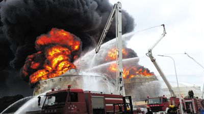 据全程参与消防的一位人士介绍,就在消防员全力灭火时,610、608、607号油罐中有一个罐体出现裂缝,罐内油流出并被引燃,现场出现流淌火,出现裂缝的油罐和另一油罐很快复燃。
