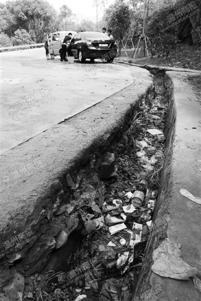 几天前,记者走访发现从福建山陵园下来的一个三岔口处,有一紧邻路边的泉水,不少停靠在岔口转弯处的私家车车主正在此处清洗车辆。车主们不时用小桶从泉水处提水,随着车体逐渐变得干净,地上的污水也顺着坡路越流越远;各类生活垃圾、洗衣粉包装袋则被随意地丢在路边的水渠里,十分不雅。