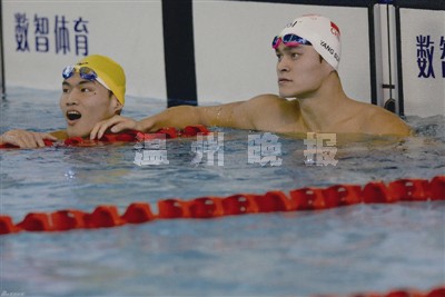 作为中国游泳队最大牌的明星,也是最有争议的选手,奥运冠军孙杨的关注度最高。此次比赛是孙杨去年被爆出“禁药门”事件后的首秀,因此在主办方有意无意地安排下,本次赛事的首枚金牌就在男子400米自由泳这个项目中产生。在昨天上午预赛中,孙杨轻松地以3分48秒60的成绩获得小组第一,并拿到预赛第一。让众多泳迷大惑不解的是,男子400米自由泳预赛名单中居然有温籍仰泳名将徐嘉余,而且,他预赛游出了3分53秒26,排在所有选手第三位。也因为这个预赛第三,决赛中,孙杨分在第四道,徐嘉余分在了第三道,紧邻着孙杨肩并肩游泳比赛,这还是第一次。