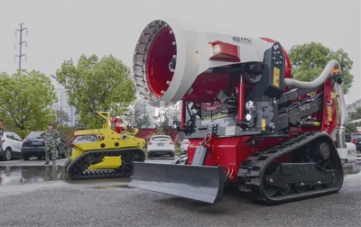 技术人员王先生称,萨迈特时速可达10公里,还能进行360度就地旋转,非常灵活,而且它爬坡能力出众,能爬上35度的陡坡,能适应大部分复杂路面。和TAF20不同,萨迈特的炮口较小,通过电动推进的原理,用改变炮口内细缝的变化来调节喷水模式。
