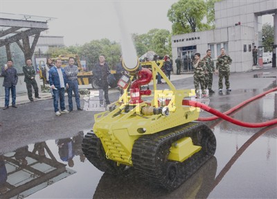 “水炮坦克”亮相温州 是身价数百万的灭火机器人