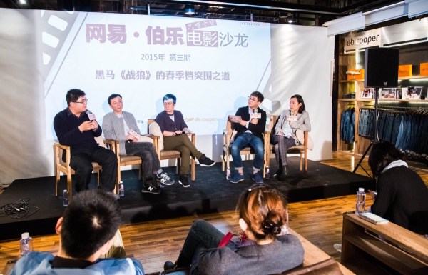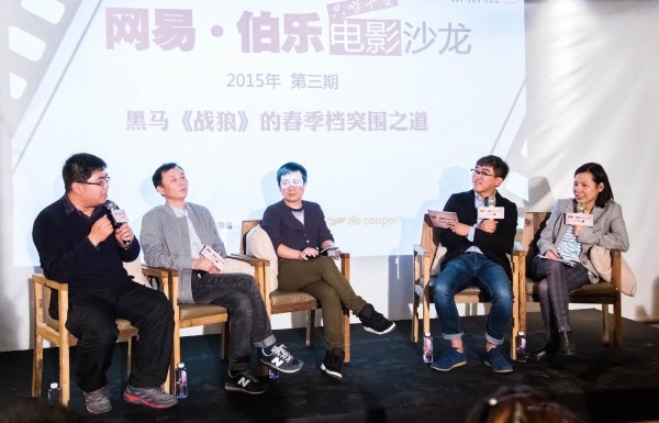 网易娱乐4月11日报道(范峥/文黄胜春/图)三天过亿,四天两亿,七天破三亿,原本不被看好的战争题材电影《战狼》意外地成为清明节档期的票房黑马,完胜同日上映的爱情喜剧《咱们结婚吧》,成功在好莱坞大片《速度与激情7》上映前抢下近四亿票房。《战狼》是如何诞生的?《战狼》的票房奇迹是如何成就的?《战狼》的成功是个例还是将成为可复制的模式?4月11日,网易·伯乐电影沙龙邀请到《战狼》的制片人吕建民,影片发行负责人、福建恒业电影发行有限公司总经理陈辉,《兵器》杂志资深编辑白孟宸与伯乐营销CEO张文伯以及网易娱乐电影频道主编张喧一同就影片的票房、口碑与影响进行讨论。