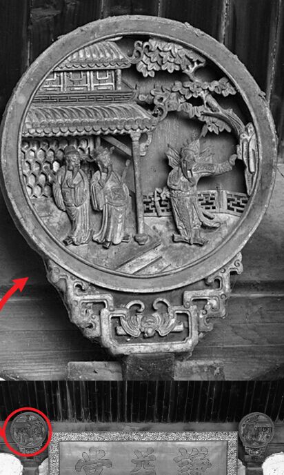 据悉,丢失的圆镜直径约60厘米,上面雕刻着人物、房屋,画面流畅、细节精美。圆镜之一雕刻有两名文官与一名武将,另一块圆镜上则雕刻有文官与骑驴隐士的人物形象。应该说,木刻圆镜包含有一定的人文价值,也可反映当时木刻工匠的雕刻水平;镜的背面设有卡槽,可直接悬挂。