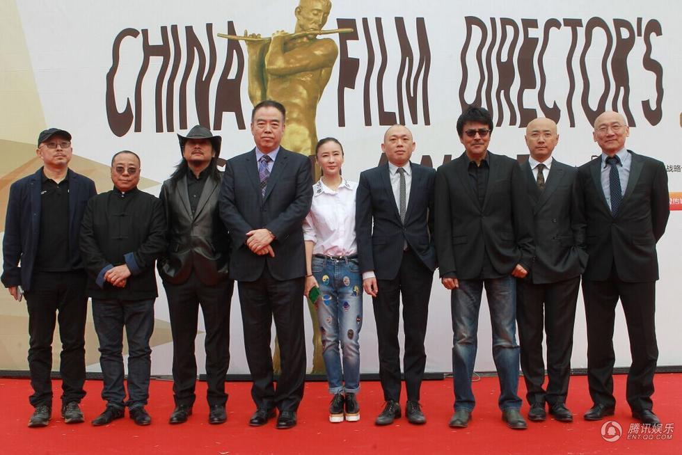 腾讯娱乐讯(图/薛建宇)2015年4月12日,第六届中国电影导演协会2014年度表彰大会颁奖盛典将在京举行,协会主席李少红、终评委主席陈凯歌、冯小刚、黄建新、徐峥、范冰冰、汤唯等导演及明星一一亮相。图为终评委主席陈凯歌和众终评委成员。