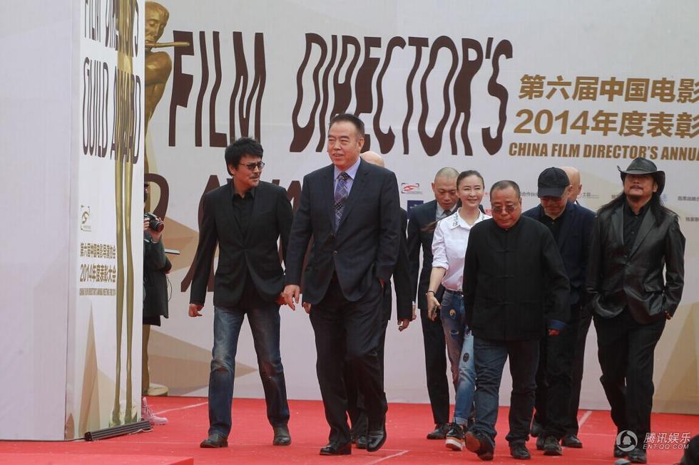 腾讯娱乐讯(图/薛建宇)2015年4月12日,第六届中国电影导演协会2014年度表彰大会颁奖盛典将在京举行,协会主席李少红、终评委主席陈凯歌、冯小刚、黄建新、徐峥、范冰冰、汤唯等导演及明星一一亮相。图为终评委主席陈凯歌和众终评委成员。
