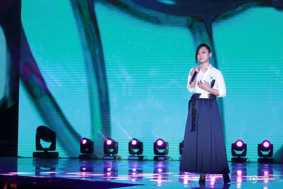 腾讯娱乐讯(图/薛建宇)2015年4月12日,第六届中国电影导演协会2014年度表彰大会颁奖盛典将在京举行,协会主席李少红、终评委主席陈凯歌、冯小刚、黄建新、徐峥、范冰冰、汤唯等导演及明星一一亮相。图为周笔畅现场演唱电影《归来》主题曲《跟着你到天边》。