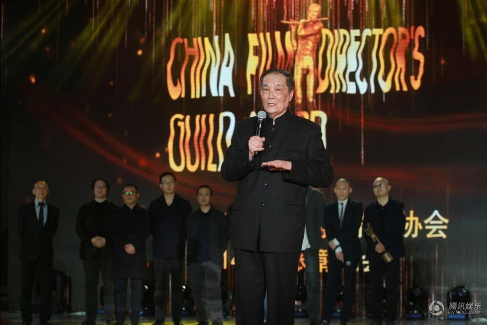 腾讯娱乐讯(图/薛建宇)2015年4月12日,第六届中国电影导演协会2014年度表彰大会颁奖盛典将在京举行,协会主席李少红、终评委主席陈凯歌、冯小刚、黄建新、徐峥、范冰冰、汤唯等导演及明星一一亮相。图为郑洞天导演上台和大家分享这些年中国电影、中国电影导演的故事。