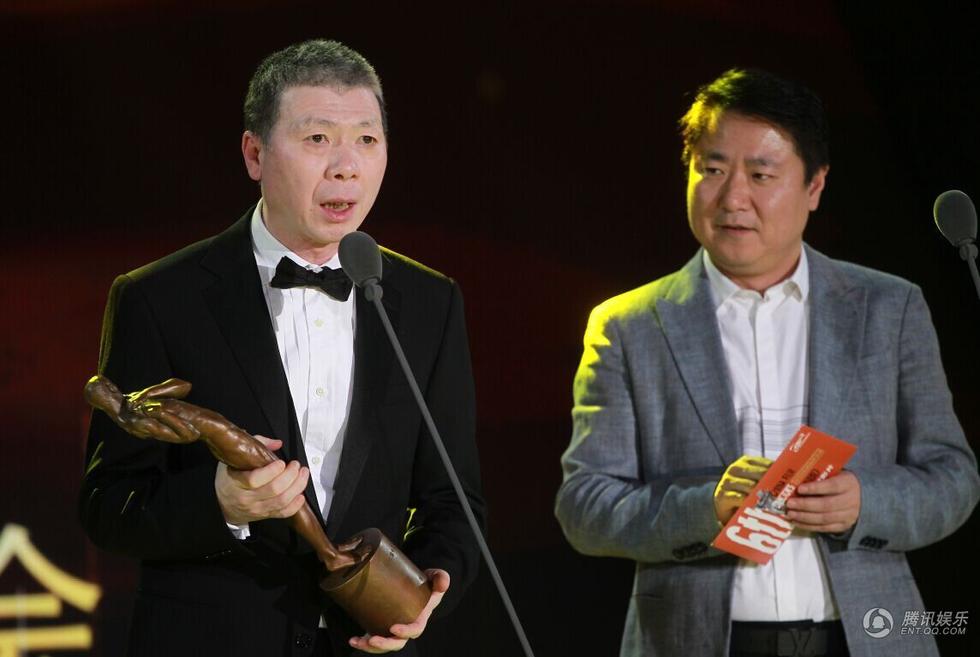 腾讯娱乐讯(图/薛建宇)2015年4月12日,第六届中国电影导演协会2014年度表彰大会颁奖盛典在京举行,协会主席李少红、终评委主席陈凯歌、冯小刚、黄建新、徐峥、范冰冰、汤唯等导演及明星一一亮相。图为冯小刚导演、王中磊先生和于冬先生担任颁奖嘉宾。