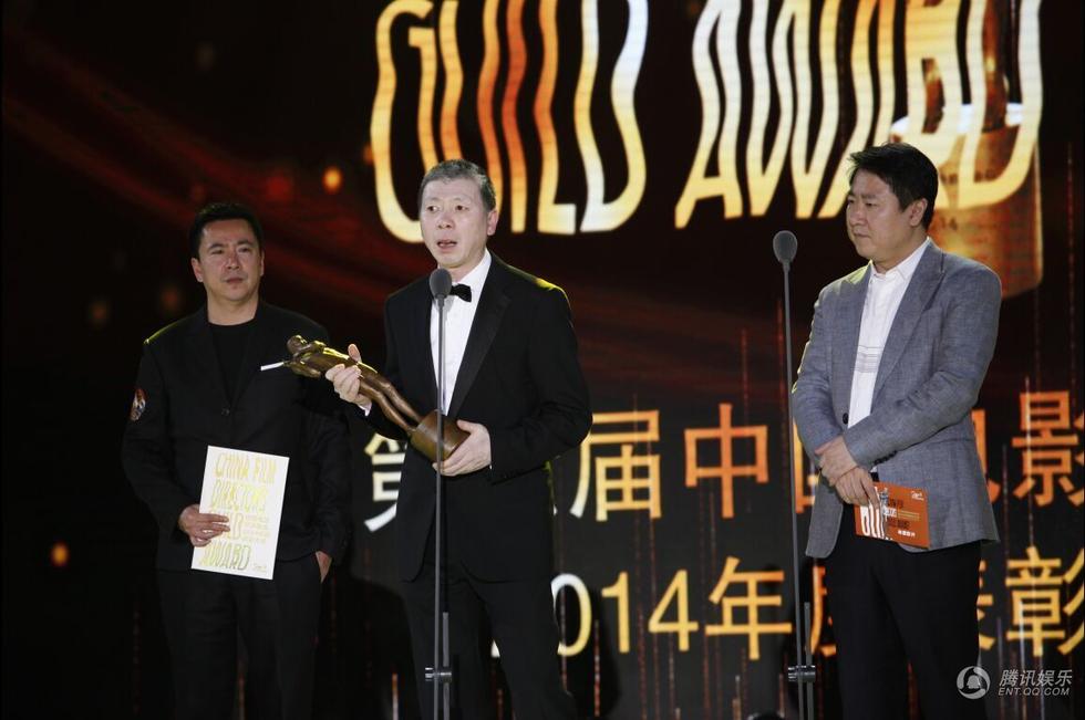 腾讯娱乐讯(图/薛建宇)2015年4月12日,第六届中国电影导演协会2014年度表彰大会颁奖盛典在京举行,协会主席李少红、终评委主席陈凯歌、冯小刚、黄建新、徐峥、范冰冰、汤唯等导演及明星一一亮相。图为冯小刚导演、王中磊先生和于冬先生担任颁奖嘉宾。
