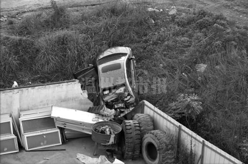 受害人的轿车撞在建筑工地的外墙上。警方供图