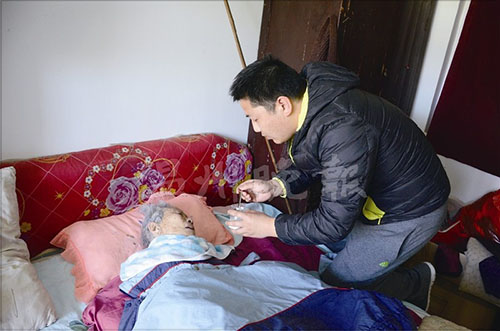 2013年,因为住在永嘉的外公外婆身体不好,施银河才在家人的坚持下回温,委托丁阿婆的外甥刘祥云照顾阿婆,但他仍然一年六七次前往孝感看望丁阿婆。今年4月9日,丁阿婆晕倒,施银河又赶到孝感,每天守在床边。