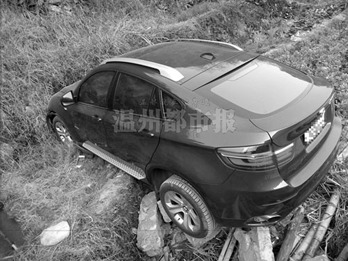 温州网讯 昨天上午,一宝马越野车驾驶员在从永嘉桥下开往瓯渠时,因分心看股票,车子栽进了路边的农田(如图),所幸当时车速不快,车损不大,人也没受伤。