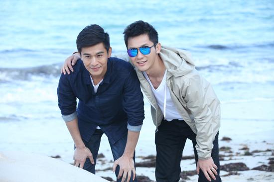 李晨和乔振宇在海边合影