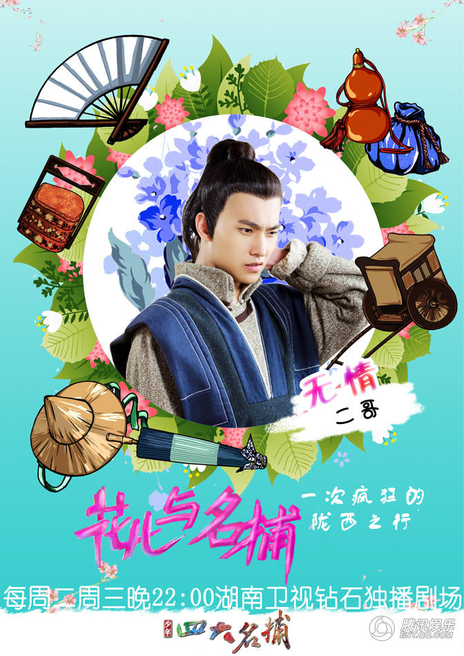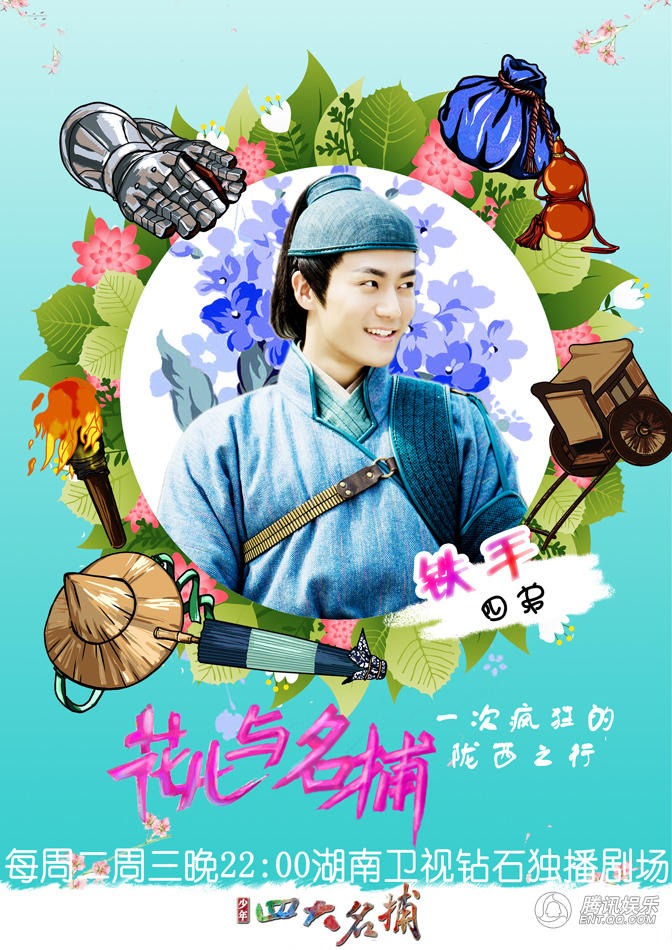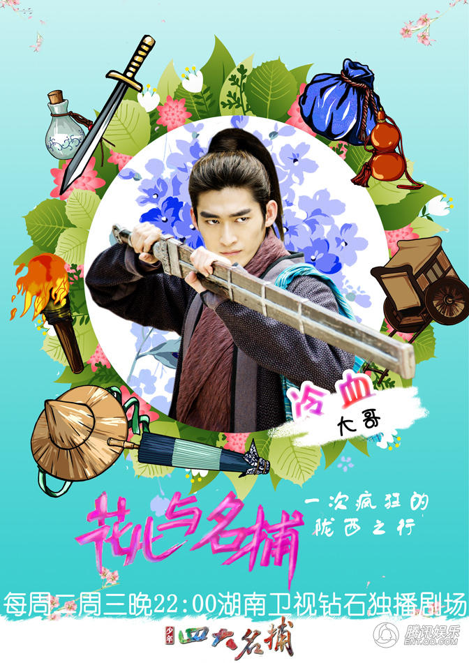 腾讯娱乐讯目前,正在每周二、周三晚10点湖南卫视钻石独播剧场热播的盛世美颜魔幻谜侠情巅大剧《少年四大名捕》本周将迎来重头戏——神捕团携众女神出差游陇西。近日该剧曝光了“花儿与名捕”版主题海报,由张翰、杨洋、陈伟霆(微博)、茅子俊四大男神组成的“神捕团”,与张钧甯(微博)、贾青(微博)、鬼鬼吴映洁(微博)(微信号:wu-ying-chieh)、黎一萱、姜尘、郑爽等花儿们组成的“花儿与名捕”旅行小分队,为追查玉玺失窃一案前往陇西,路遇埋伏,坠崖、中毒、受伤……出差途中,状况不断。