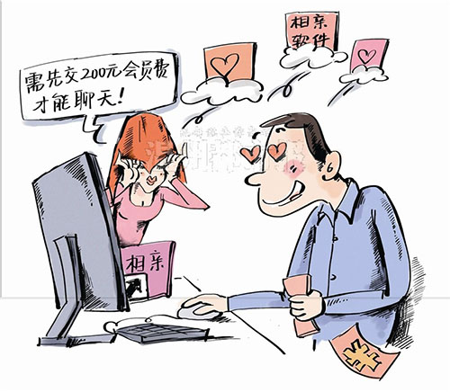 可是,说说容易,去哪儿找女朋友呢?要是天上下雨的时候,也下女朋友就好了。4月13日,林先生想要不试试网恋吧,于是他在网上输入了“相亲”这个关键词,搜索引擎上立刻出现了数以亿计的信息,环肥燕瘦,琳琅满目。林先生找寻比对了一番,然后下载了一个相亲软件,很快在其中发现一个“美女”,那形象根本就是他的梦中情人啊,他想就是她了。但是当林先生点击对话框准备找这“美女”聊天时,页面弹出一个信息,称需要成为会员才能聊天。