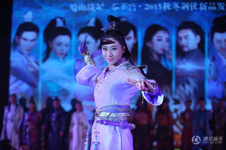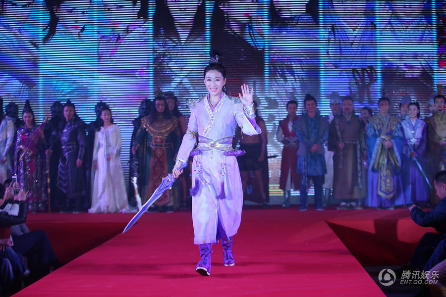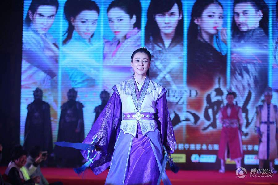 腾讯娱乐讯4月13日,热拍中的《蜀山战纪》终于在热望期待中,于横店举行了隆重而别出心裁的首场新闻发布会。发布会的主题是前所未有的2015剑侠时装展——众位主演穿着剧中奢华夺目的服装,手持神兵利器,化身T台模特走出一场精彩绝伦、鼎级视觉盛宴的大秀。发布会现场,大咖云集,星光熠熠,陈伟霆(微博)和叶祖新这对新cp组合引起了赵丽颖的醋意大发,稻草熊影视的签约演员刘思彤和武小莉吸睛程度百分百,不但造型靓丽,武功和兵器秀更是精彩绝伦。