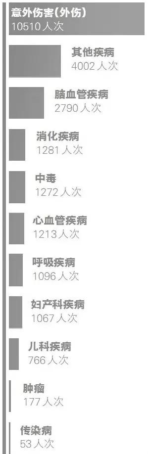昨日,市急救中心透露的数据显示,去年该中心接到5.7万多个院前急救电话,共有24227人次被院前救护车送至医院。意外伤害及外伤是接警、送院患者数最高的疾病,达到10510人次,车祸、斗殴、溺水、火灾、滑倒等意外事故导致的伤害都被纳入该项疾病谱中。