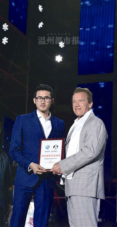 温州小伙叶伟仁为施瓦辛格“造型”