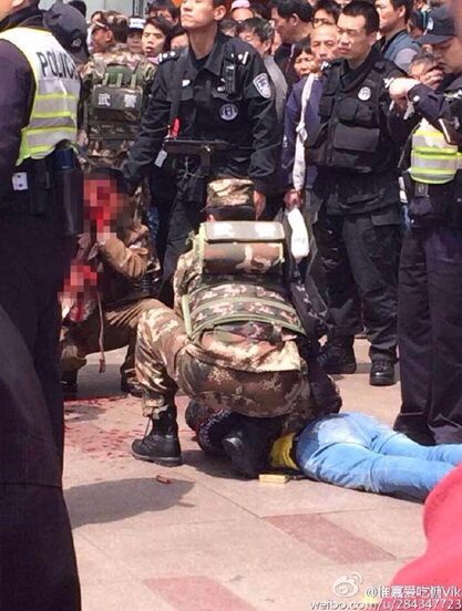 上海人民广场发生持刀伤人案 一协警被砍(图)