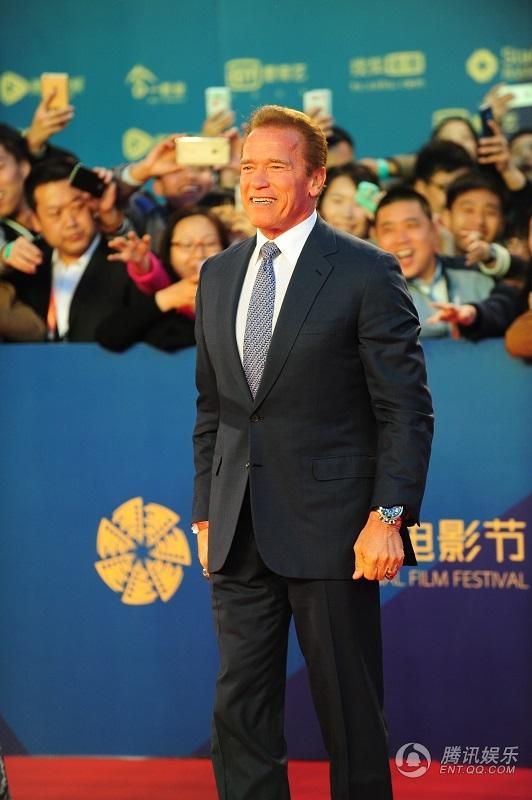 腾讯娱乐讯于16日北京电影节开幕式上,数百位明星亮相红毯星光熠熠,其中美国好莱坞传奇影星阿诺·施瓦辛格压轴现身秒杀不少菲林,也将现场推向高潮。作为好莱坞著名动作明星,其凭借《终结者》系列电影为中国观众所熟知。在经历七载从政生涯后再度强势回归影坛,由他主演、詹姆斯·卡梅隆操刀编剧的“终结者系列”第五部——《终结者:创世纪》也成为2015年最值得期待的好莱坞大片之一。电影节开幕式致辞中,施瓦辛格表示自己曾数次来到中国,与中国有着深厚渊源,不久后他主演的影片《终结者:创世纪》将和大家见面,并再现影片经典台词“I'll be back ”宣告阔别已久的终结者系列影片和自己都将和观众再聚首。