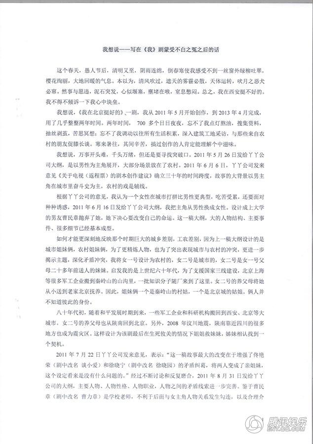 我恳请关心我的朋友,特别是编剧同行,看看我创作的电视剧《我在北京挺好的》,用你们的眼光甄别一下,呼吁一下,否则,明天躺枪中弹不知道是谁。我期待着风和日丽的春天的阳光能照在我的肩膀上。