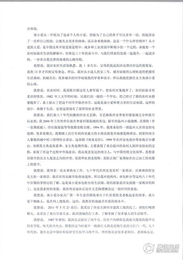 我想说,谈小爱办家具厂第一单生意的桥段来自于红星美凯龙老板起家的故事。谈小爱干蜘蛛人,是在网上搜集的。这些,我都有机地融合在我的剧本中。