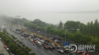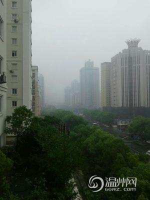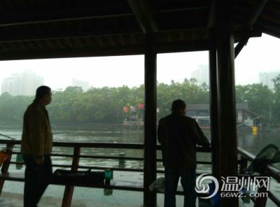 江心屿还看得见,瓯北就比较朦胧了。(记者 王建平)