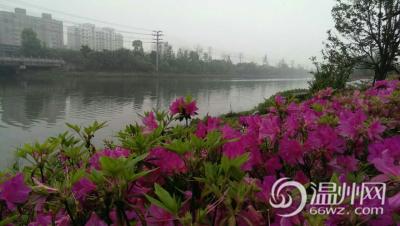 瓯海大道建中街出口,能见度大于1000米。看看那杜鹃花,是不是开的很艳丽?(通讯员 智慧如海)