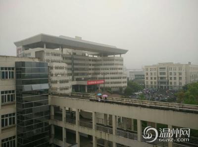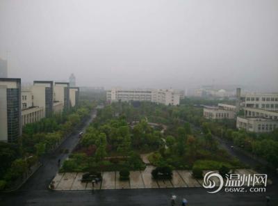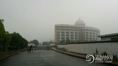 站在温职院的图书馆和教学楼向远方看去,校园已被大雾笼罩,大罗山也是看不清了,可见的只是那撑伞的人群。(通讯员 蔡驰凯)