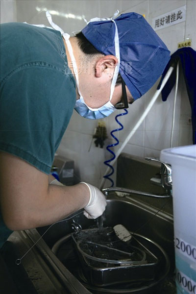 手术过程中,周杰一直站在手术室内,精神需要高度集中。记者也和他一起站着,并没感觉到累,只感觉时间过得很快。一眨眼的工夫,又是2个小时过去,到了中午12时手术结束时,周杰才用拳头用力地敲几下自己的后背,缓解一下疲劳。这时,记者才发现自己已经连续4个小时没有坐下,找个凳子坐下后,双腿酸痛难忍,又累又饿。