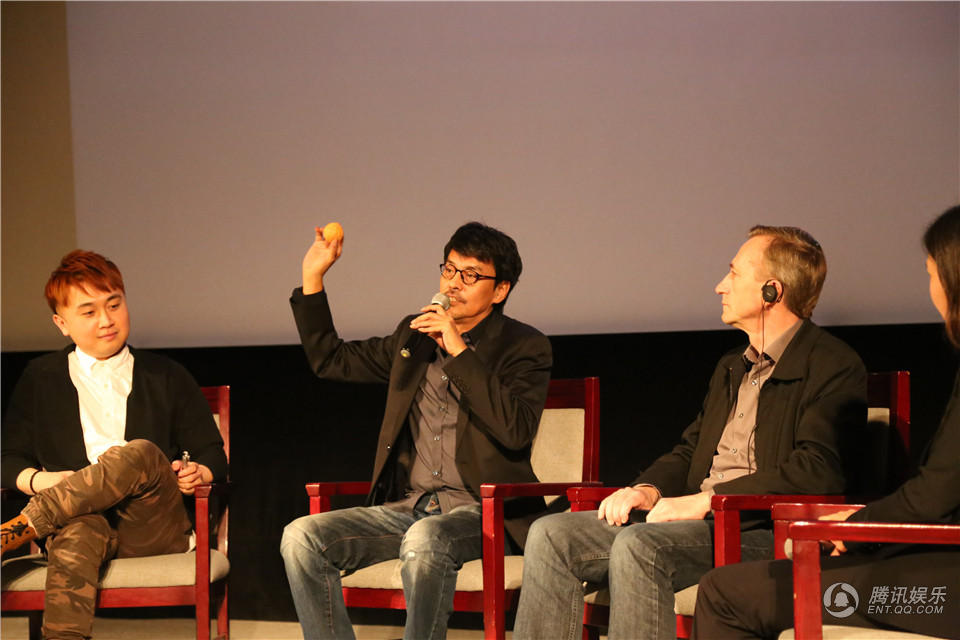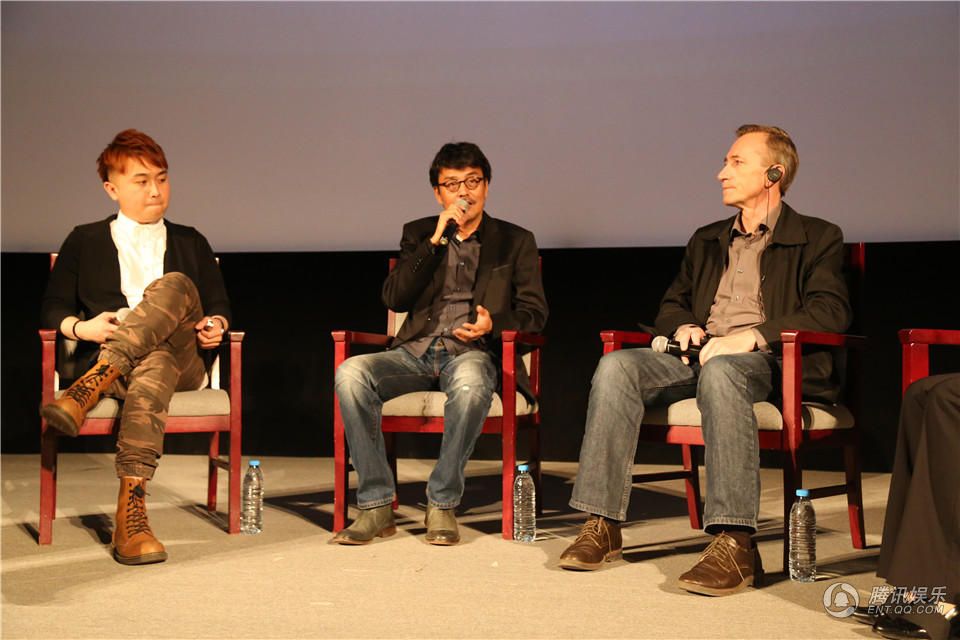 刚才看到那个电王宝强的设计非常有趣,当时在设计这个的时候,Daniel Jeannette就说了一句话,这个外星生物来到地球学了一些不好的习惯,吐一口电子痰,可能因为中国人有这种陋习,它也学会了,吐一口电子痰,就把王宝强电了一下,这里面很多,我们只是取下一些他们互动的点建立关系,刚刚主持人问到文化,其实整个影片里面在文化上我可能设计了只是一个对立面,我们的文化的对立面,其实整个影片到最后只说了几句话,人太自以为是,这个世界可能完全不是我们看到的这样,只不过是我们有限的眼光看不到而已。因此在整部电影里面只是让大家感受到这一点,我们身边人与人的关系,其实才是最重要的,我们应该紧紧抓住,千万别松手。其实整个影片传达了这样一个简单的故事。