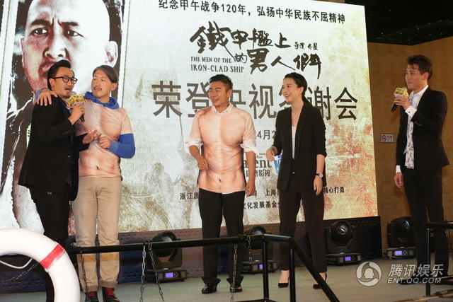腾讯娱乐讯(文/胡梦莹)海战史诗剧《铁甲舰上的男人们》将于4月21日登陆央视八套黄金档。20日,该剧在沪举办央视答谢会,导演齐星率主演徐佳、施京明、赵春羊等悉数亮相。采访中,导演称这是唐僧师傅带着仨徒弟的故事,徐佳自诩是白龙马,却被吐槽一副猴儿样。