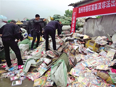 工作人员将非法出版物集中在一起,准备销毁。 冉梦蝶 摄