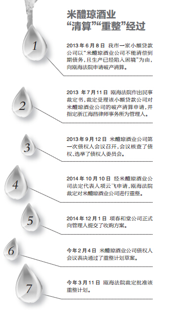在破产清算过程中,米醴琼酒业公司法定代表人项云飞提出申请,请求通过重整延续公司经营。2014年10月10日,瓯海法院裁定对米醴琼酒业公司进行破产重整。