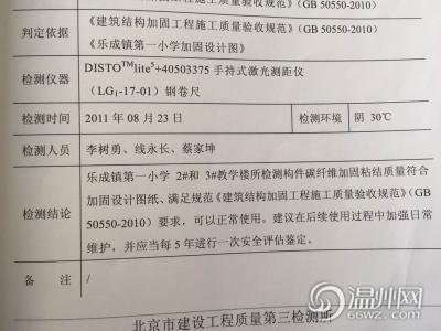 【学校教学楼已经过加固】据叶校长介绍,这幢教学楼于2011年8月份进行过鉴定,鉴定为c级危房,于是对该教学楼进行了加固,下次的鉴定时间为2016年8月。(记者 陈克力 潘涌燚)