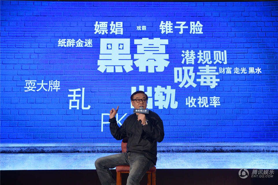发布会一开场,大银幕上打出了各种关键词:黑幕、艳照、整容、潜规则……让现场观众一时摸不清头脑。对此,尔冬升表示,这些关键词都是不了解的人对于这个圈子的印象,而它们的出发点都是同一个——成功。“这些负面的词汇之所以出现,就是因为今天大家太渴望成功,这些词是我们这个时代的一种成功学”,尔冬升不讳言自己也想成功,更大方承认,之前拍摄《枪王之王》和《大魔术师》也是奔着“成功”二字去的:“那时候我想要融入内地市场,我希望自己可以做到,但是我觉得不开心,因为那些不是真的打动我的题材”,接着尔冬升透露,自己在《大魔术师》之后去过广州,考察打工群体,想拍摄“打工妹”的题材,但随着了解的深入,考察过打工者的生活后,觉得很难找到其中的趣味性。之后徐克的3D技术成熟,尔冬升便起意跟徐克联手拍摄《三少爷的剑》,因此来到横店,意外发现了“横漂”群体,没想到触发了他久违的创作冲动。