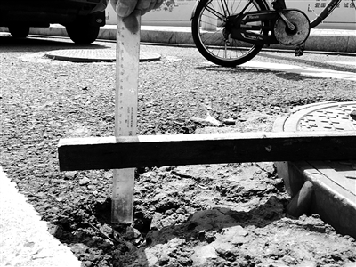 昨天,记者来到尹老伯所说的黎明东路延伸段一探究竟。这条约200米的柏油路刚铺设不久,道路中间还有尚未设置好的隔离墩。200米之外靠近杨府山小区路段是约20米的石子路,一路走来,目测有20多个窨井盖,记者简略测量了一下,它们平均高于路面5至8厘米。