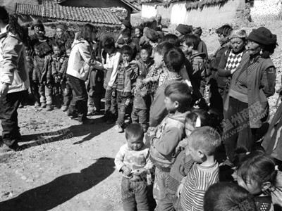 3月份的高山,气温比较低,大约零下5度的样子。一进村口,我就看到一名五六岁的小男孩穿着短袖站在小山坡上,我立即脱下自己的外套包住这个孩子,发现孩子的小手已经冻僵。同行的义工说:“这里物资短缺,很多孩子一个冬天都是这么冻过来的。”随后我把带来的几大袋衣物全部发放给他们。
