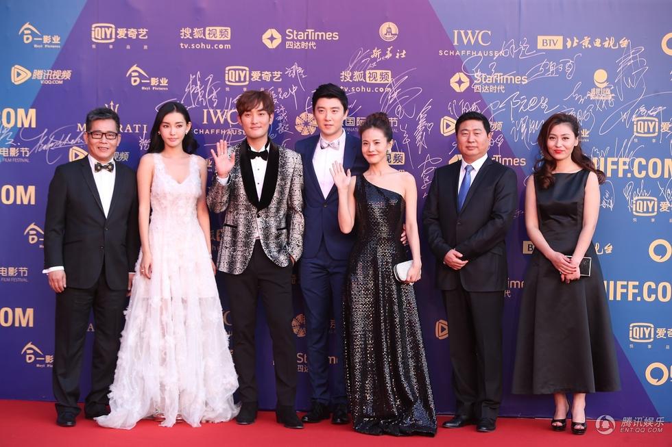 腾讯娱乐讯4月23日晚,第五届北京国际电影节正式闭幕,《济公》剧组主创亮相,主演童菲、安七炫、林爽、姚远以及导演刘嘉靖,出品人徐云,制片人赵艺涵携手踏上红毯。