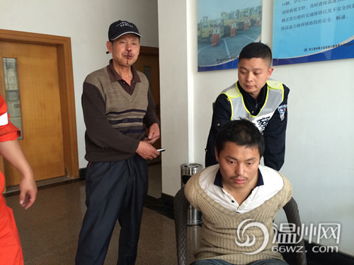 23日15时许,温州高速交警支队指挥中心接到过路驾驶员报警称,在乐清段高速公路有两个行人在跑。接警的一大队民警林仕强警官前后两次巡查可疑路段,均未发现有行人。之后,正在乐清出口附近巡查的一大队叶建胜教导员突然看到前方高速公路边护栏上窜出一个衣衫不整的青年男子,迅速爬过护栏在硬路肩上往乐清方向狂奔。几十秒后,一位年近六十的老人爬过护栏在后面穷追不舍。